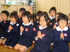 本園は、大正15年5月1日当時の大分市長の要請により、西大分地区公立幼稚園の代行として、浄土寺境内に園舎を設立し、明照幼稚園が誕生しました。就学前の最も重要な時期に、幼稚園教育によって幼児の心身の健全な発達を助長していきたいという熱意のもとに創立されたものであります。仏教教育のめざすものは、一人ひとりのいのちを生かし、物事の正しさをしっかりと見つめ、全ての人々と共に生きる心を育むこととされています。毎日のおまいりの中で、慈愛の満ちた幅広い人間性を養い、迷いのない仏の智恵を受けて、自然に生きる力を身につけていきます。明照幼稚園では、仏教教育の目標である “明るく、正しく、仲よく” を念頭に、それぞれの年齢にふさわしい活動を通して、よく感じる心(感情)・よく動く体(感覚)・よく考える思考力(認識)を賢く心豊に育つよう保育を行っています。